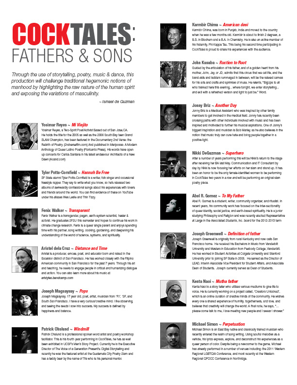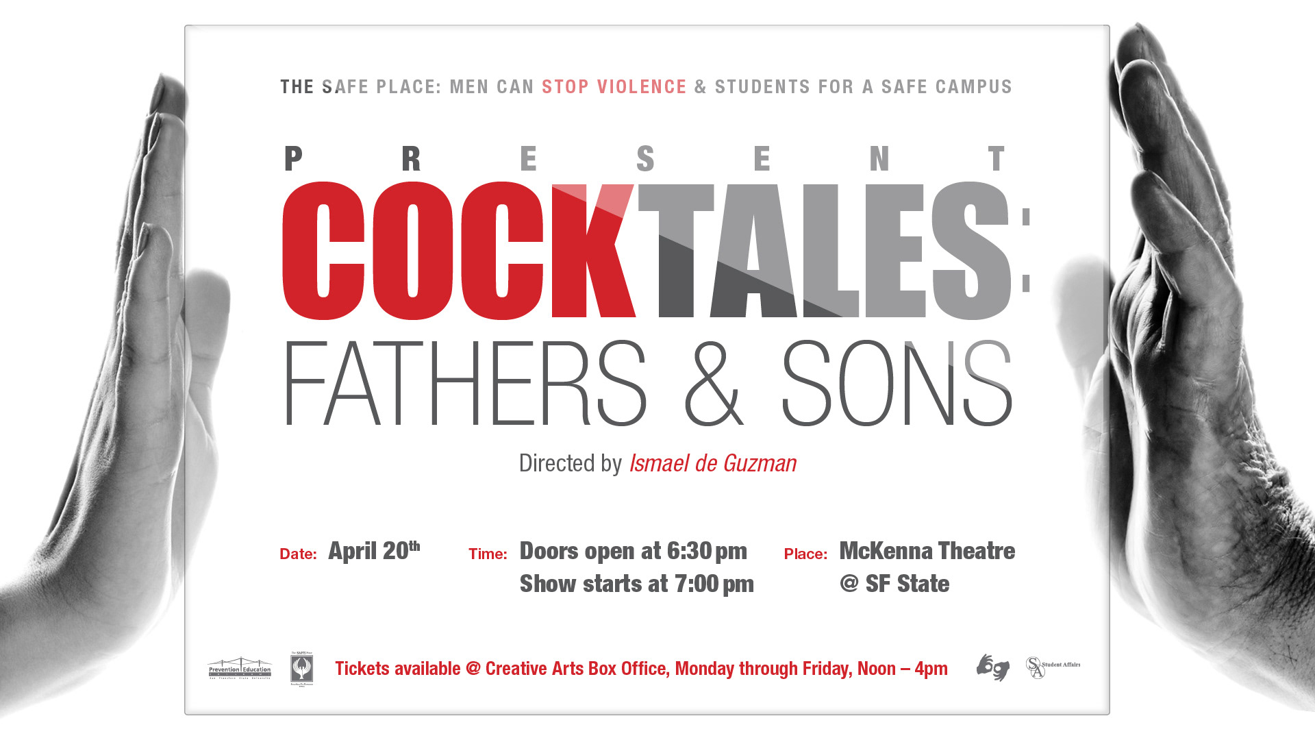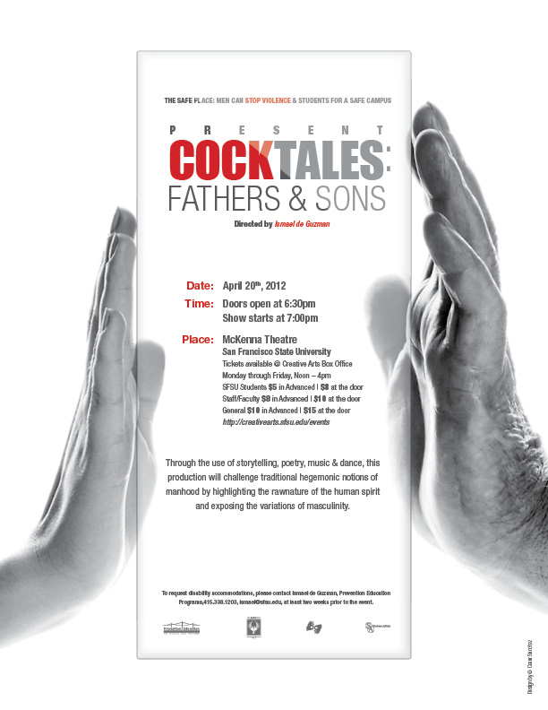Collateral design for the annual CockTales event at San Francisco State University which raise awareness about issue of sexual violence among men.