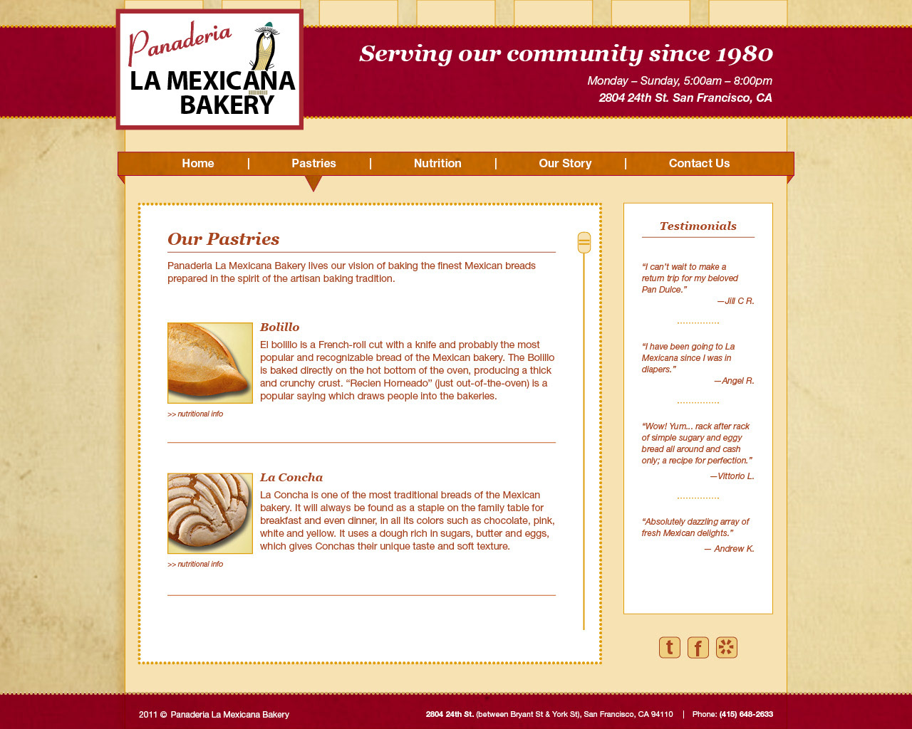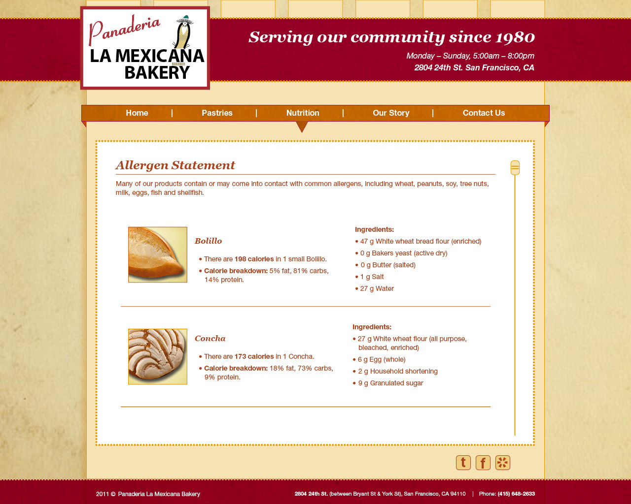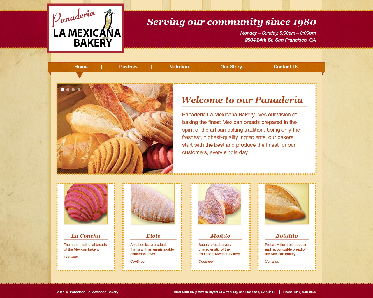 Web design for a local bakery in the Heart of the Mission Distrcit in san Francisco.
