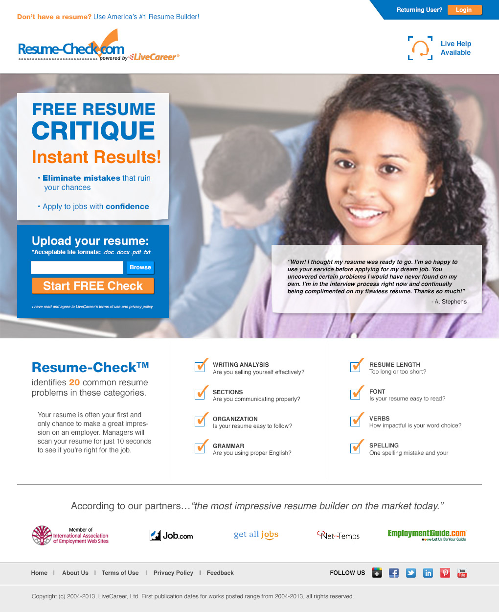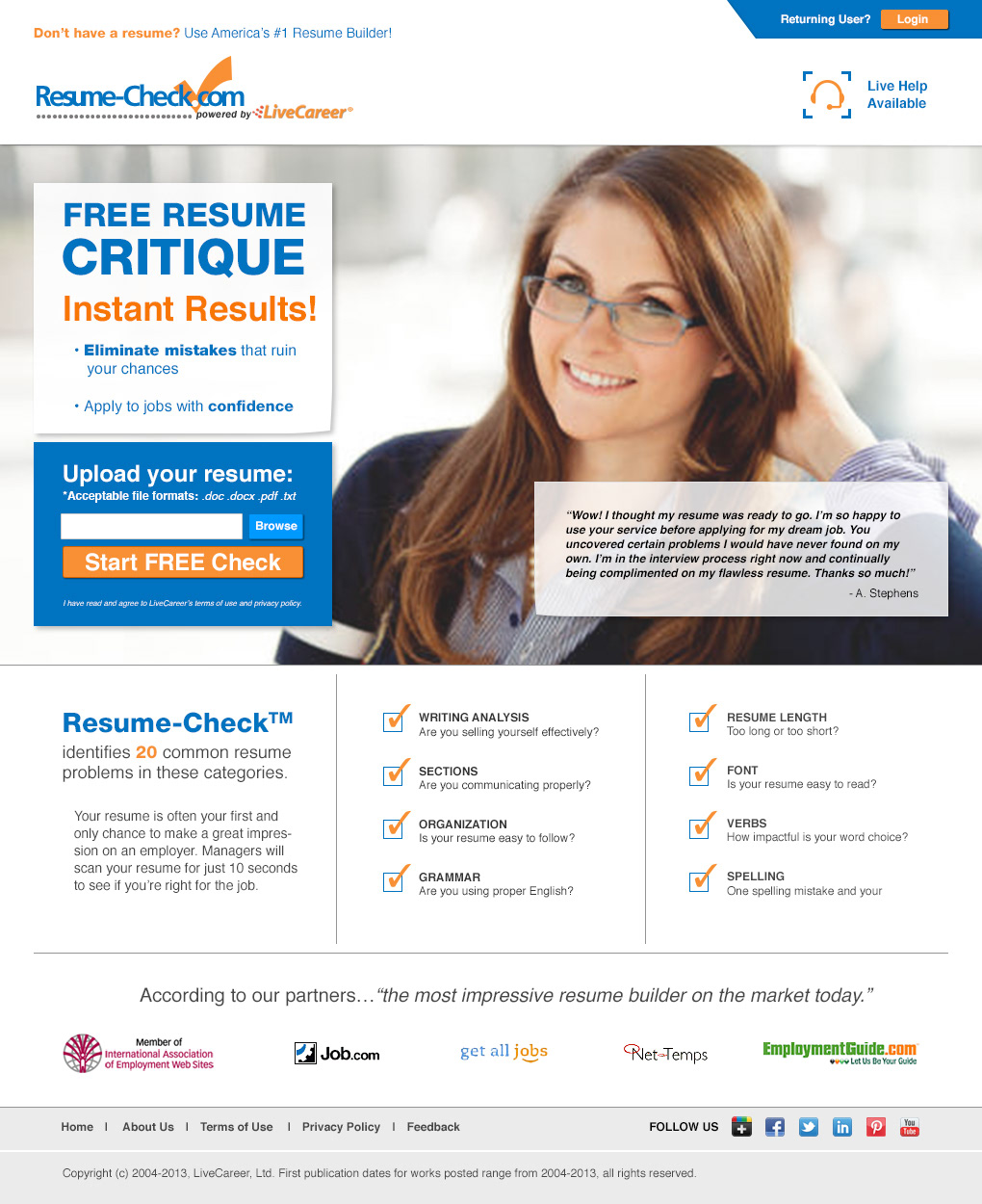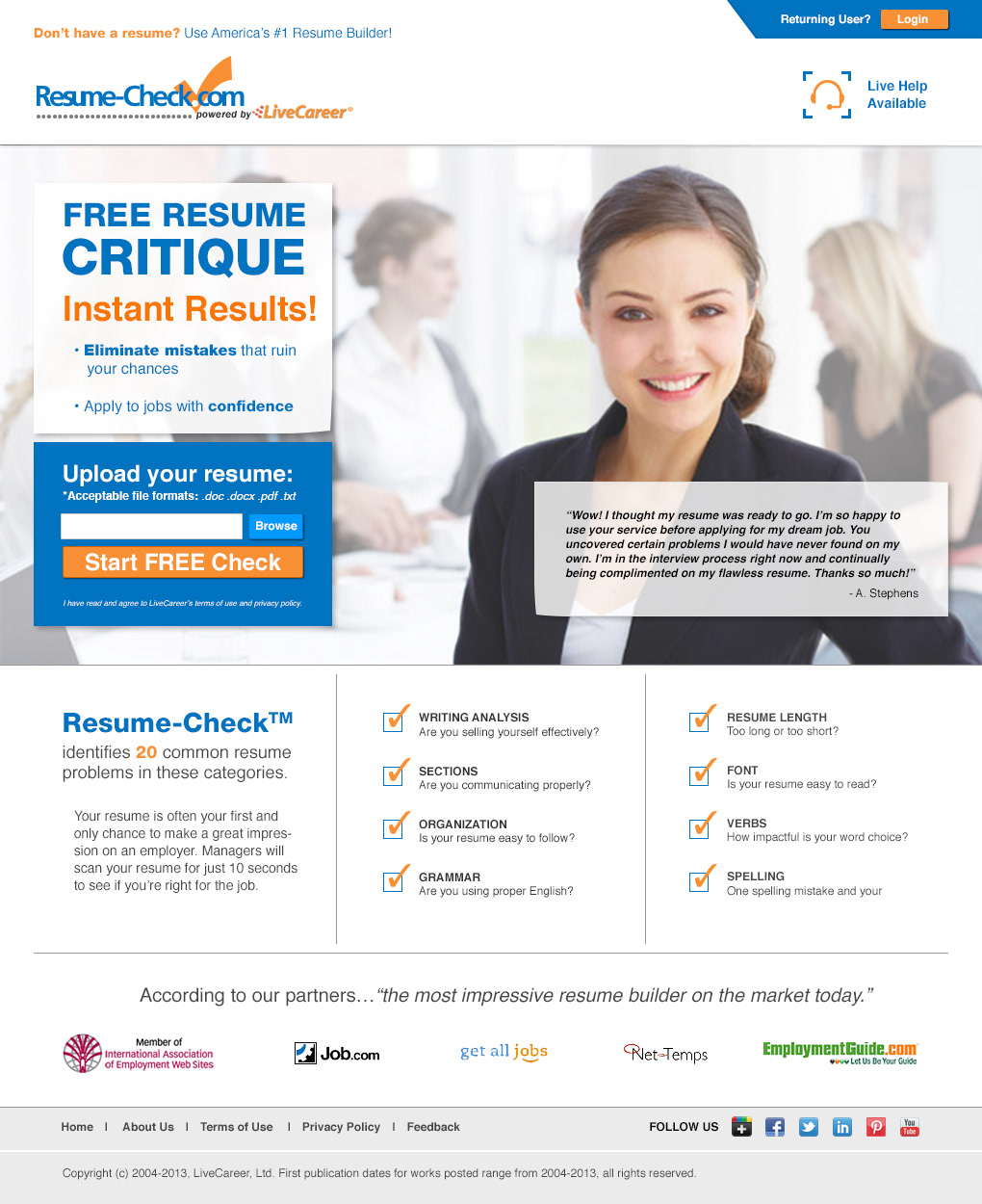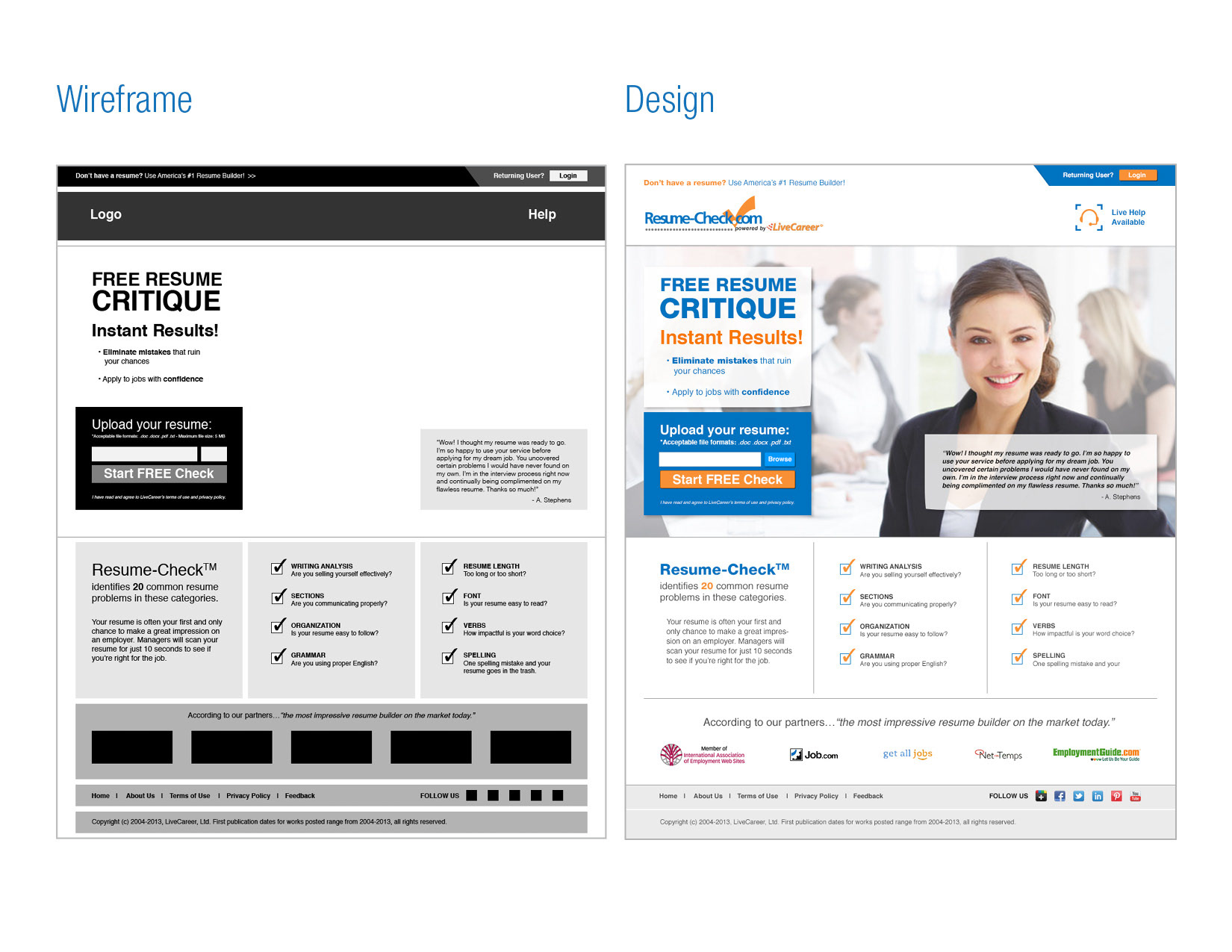 Site redesign for Resume-Check.com landing page.